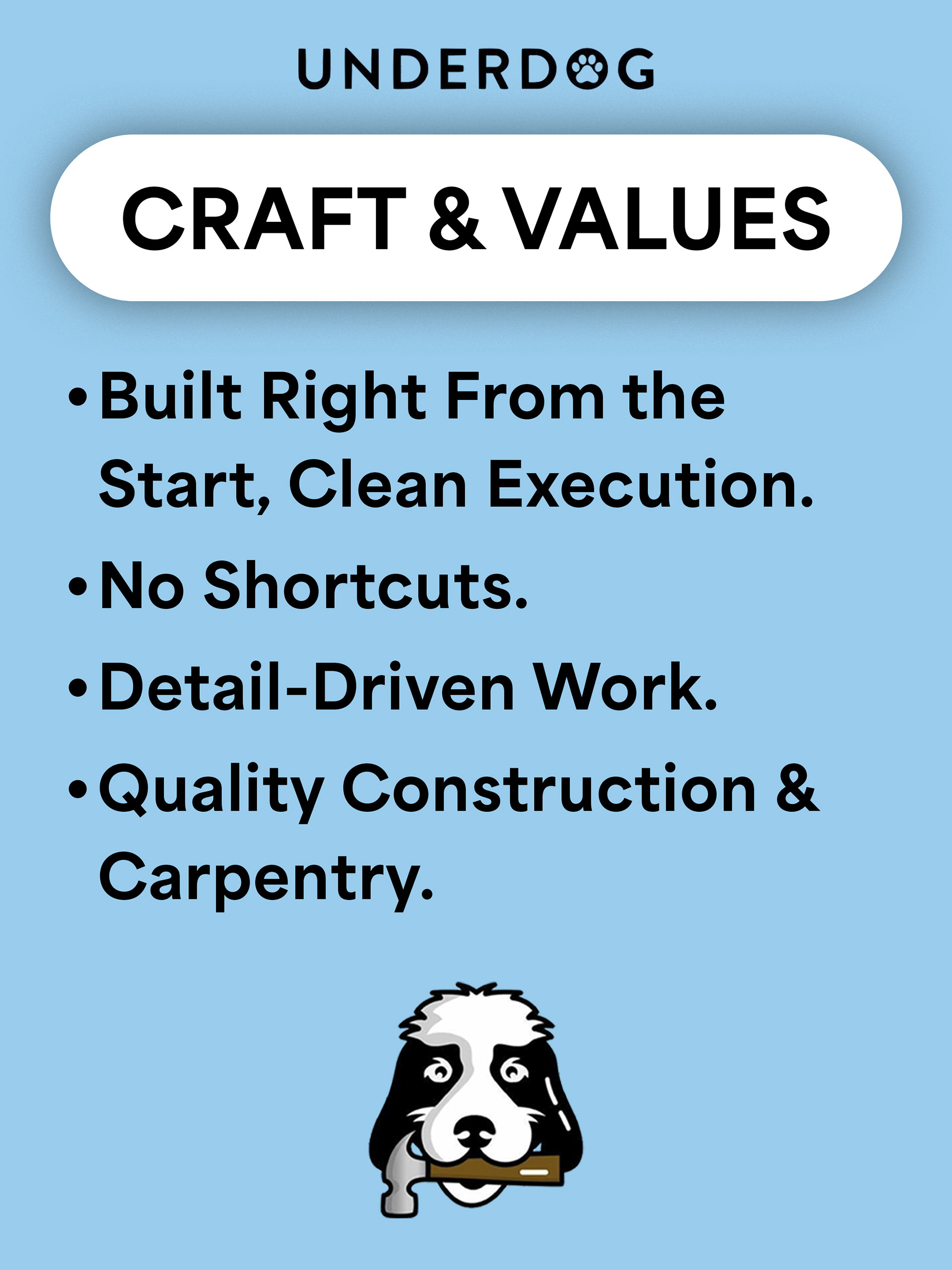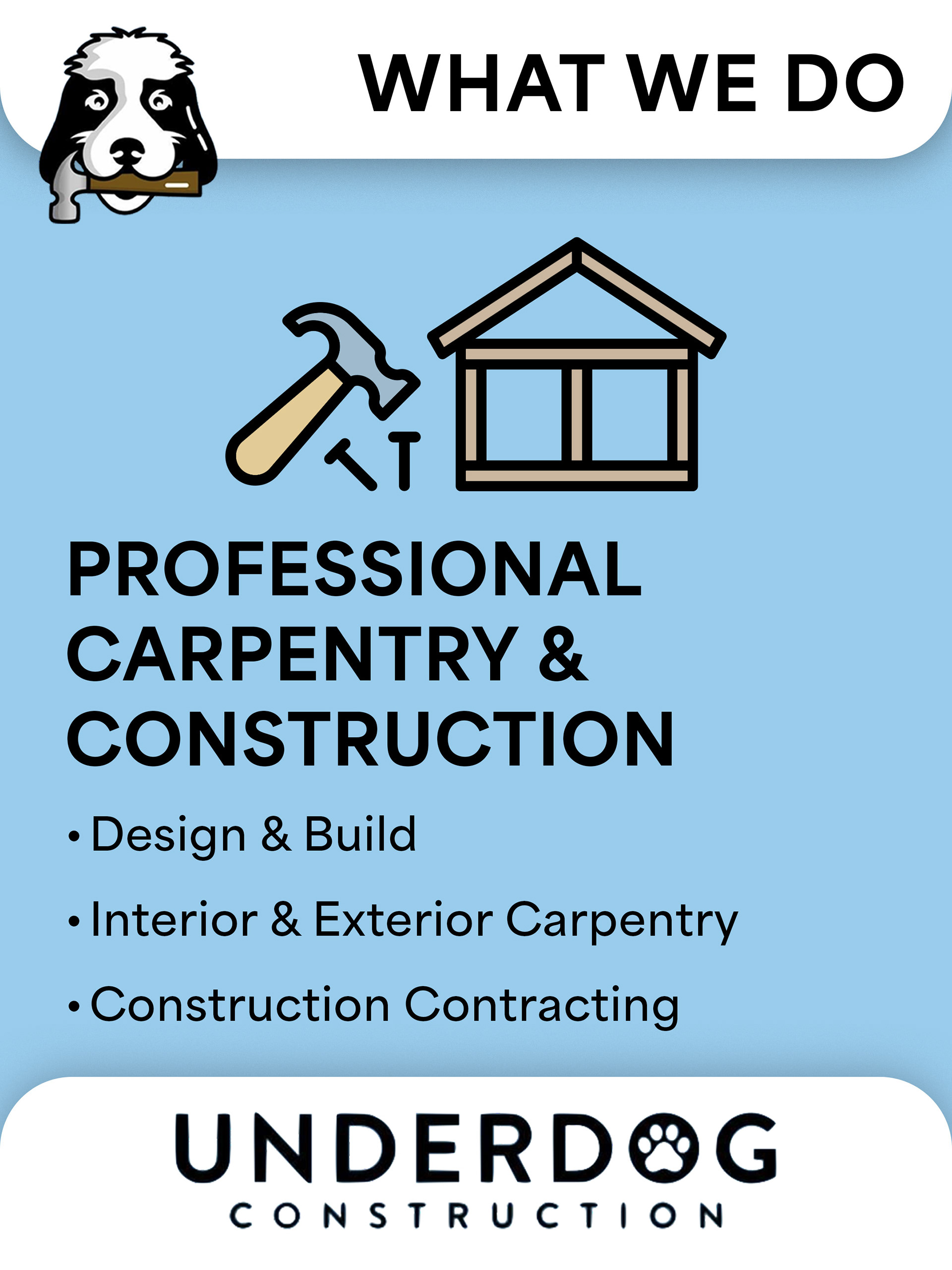 Underdog Construction is a locally based construction and carpentry company that focuses on high-quality craftsmanship and dependable service. Through my work with Easy Media Growth Partners, I supported Underdog Construction by developing clean, professional marketing visuals designed to elevate their brand presence and better communicate their services to potential clients. The focus was on creating straightforward, trustworthy design assets that reflected the company’s hands-on expertise while helping position them as a reliable, modern contractor in a competitive market.