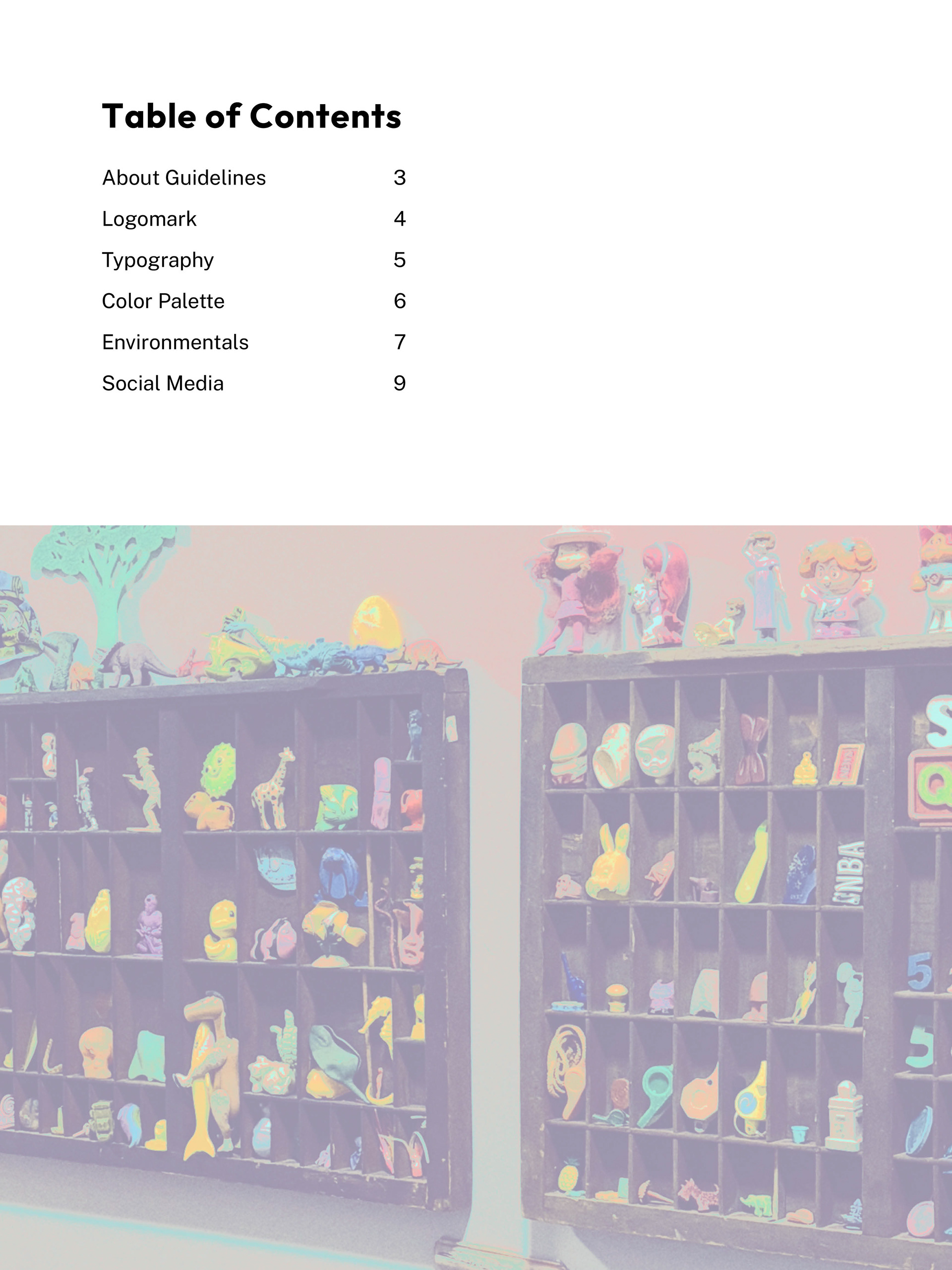 During this internship, we developed a comprehensive set of branding materials for the museum, completely overhauling the previous logomark and brand identity with assets that are more cohesive and visually aligned with the museum’s mission and aesthetic. The centerpiece of this work was the new logo. The main logo was transformed into a bold wordmark incorporating flat iconography and a color palette inspired by the playful hues of objects within the museum. After multiple iterations and careful refinement, we finalized a logomark that became the foundation for the updated brand identity. Designing the new logo was the most challenging and time-intensive part of the internship, but it set the stage for all subsequent materials.